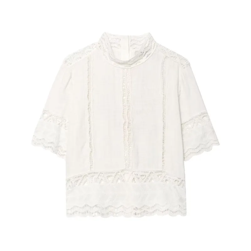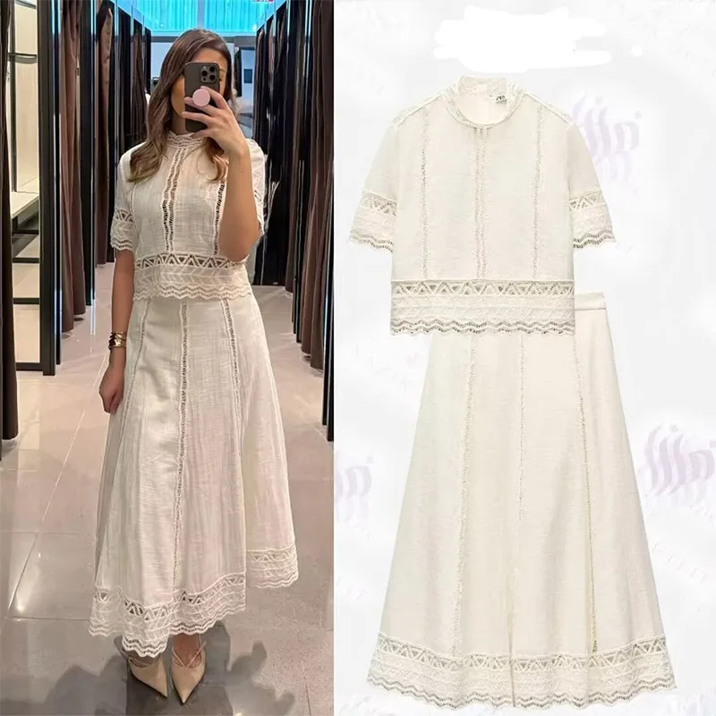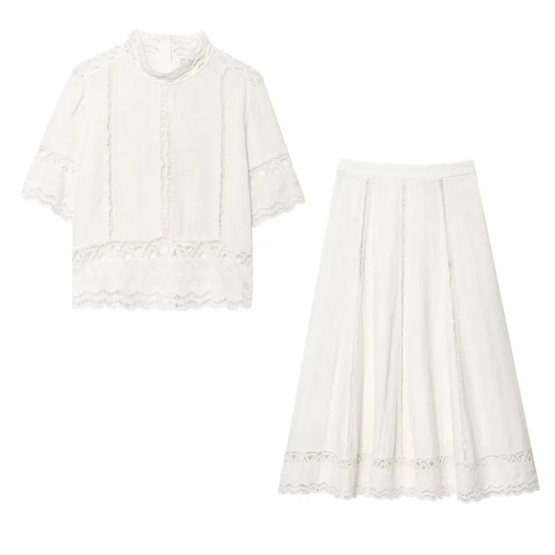 طقم نسائي صيفي من قطعتين – قميص برقبة عالية وتنورة كروشيه