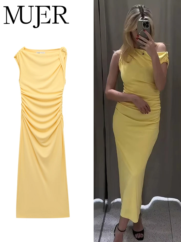 الرئيسية ملابس نسائية فساتين فساتين طويلة بثنيات صفراء للنساء