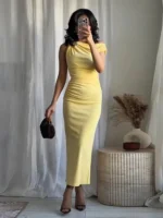 • اسم المنتج: فساتين طويلة بثنيات صفراء للنساء