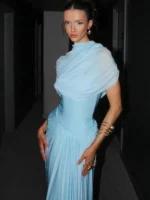 - اسم المنتج: فستان ماكسي بشال أزرق مطوي للنساء