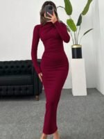 INAWLY Solva فستان نسائي بياقة واقفة وأكمام طويلة بطيات